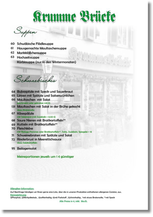 Restaurant Krumme Brücke—Kornhausstraße 17—72070 Tübingen